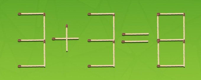 Propomos-te resolver um puzzle matemático. Na imagem, vê uma igdade incorrecta feita de 21 fósforos: 3 + 3 = 8. Tens de a corrigir movendo apenas dois fósforos para outro lugar em 10 segundos.