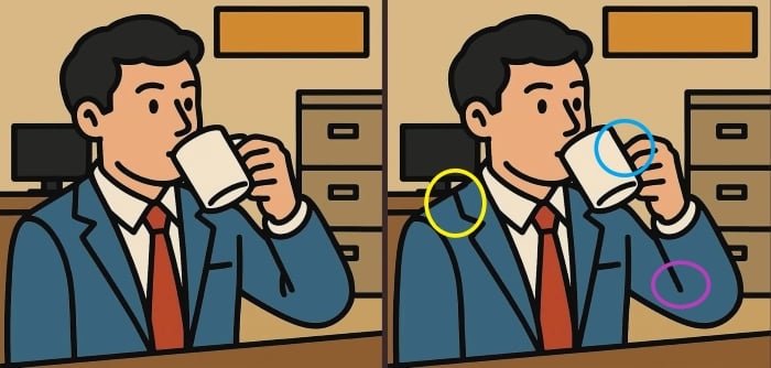 Estás pronto para experimentar? Observe com atenção d imagens de um homem a segurar uma chávena de café. À primeira vista, parecem exatamente igs, mas há três pequenas diferenças escondidas. Consegues encontrá-las todas em apenas 31 segundos? Se sim, então liga o cronómetro e começa a procurar as diferenças.