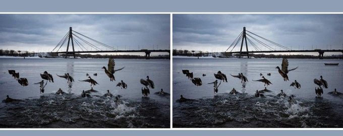 À primeira vista, as d imagens com patos parecem ser igs. Mostram a Ponte do Norte em Kiev e os patos perto dela. No entanto, existem várias pequenas mas importantes diferenças entre as imagens. Ao procurá-las, estará a testar a svisão e capacidade de reparar nos detalhes.