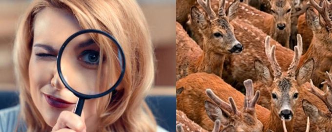 Em baixo, vê uma imagem com veados. Algures entre eles escondemos três cabras, e tens de as encontrar.