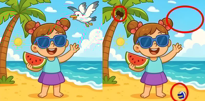 Então, estás pronto para o próximo desafio? Observe com atenção as d imagens da rapariga na praia. Podem parecer igs à primeira vista, mas há 3 pequenas diferenças. Achas que consegues encontrá-las todas em 10 segundos? Experimenta e testa a tacuidade vis!