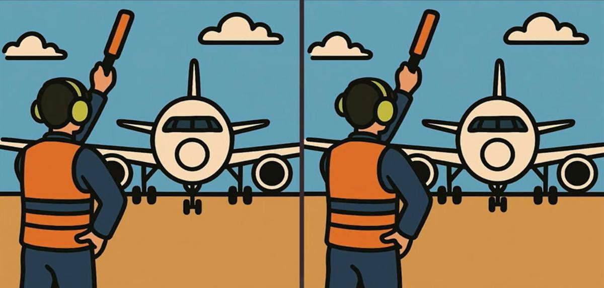 Então, estás pronto para o próximo desafio? Observe com atenção as d imagens de um controlador de aviões a guiar um avião. Podem parecer igs à primeira vista, mas existem 3 pequenas diferenças. Achas que consegues encontrá-las todas em 45 segundos? Experimenta e testa a tacuidade vis!