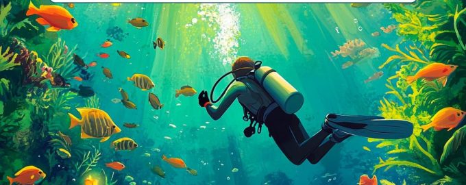 A imagem mostra um mergulhador no meio de uma paisagem subaquática. A ttarefa é olhar para a imagem com atenção e encontrar um erro grosseiro. Um dos pormenores representados é impossível.