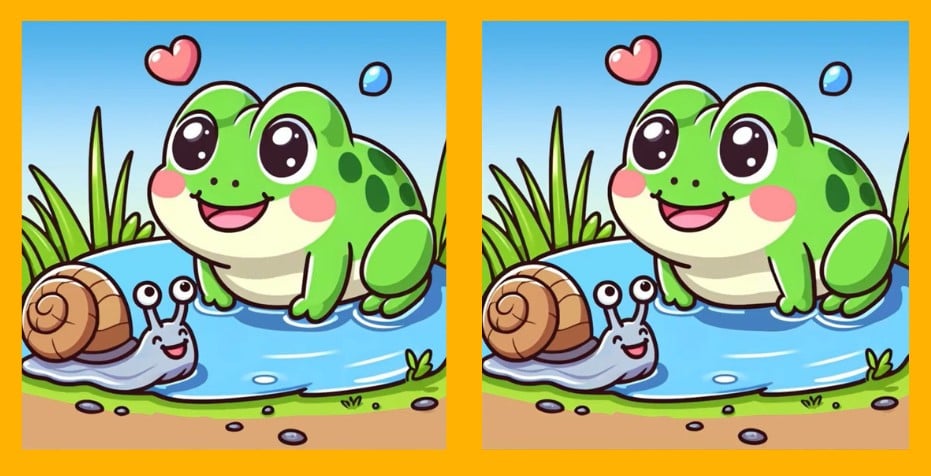 Então, estás pronto para o próximo desafio? Observe com atenção d imagens de uma rã e de um caracol. Podem parecer igs à primeira vista, mas existem 3 pequenas diferenças. Achas que consegues encontrá-las todas em 17 segundos? Experimenta e testa a tacuidade vis!