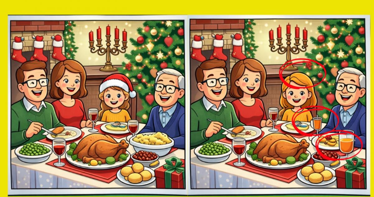 Então, estás pronto para o próximo desafio? Observe com atenção d imagens de um jantar de Natal em família. Podem parecer igs à primeira vista, mas há 3 pequenas diferenças escondidas nelas. Achas que consegues encontrá-las todas em 16 segundos? Experimenta e testa a tacuidade vis!
